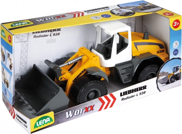 Licencovaný dětský nakladač LIEBHERR od LENA přináší realistickou stavební zábavu doma i venku. Díky pohyblivé lžíci a rameni snadno nabírá písek či kamínky a samostatně pohyblivá přední kola dělají jízdu zábavnou a plynulou. Odolná konstrukce z kvalitního plastu a kovové osy kol o průměru 6 mm zaručují dlouhou životnost i při intenzivním hraní.