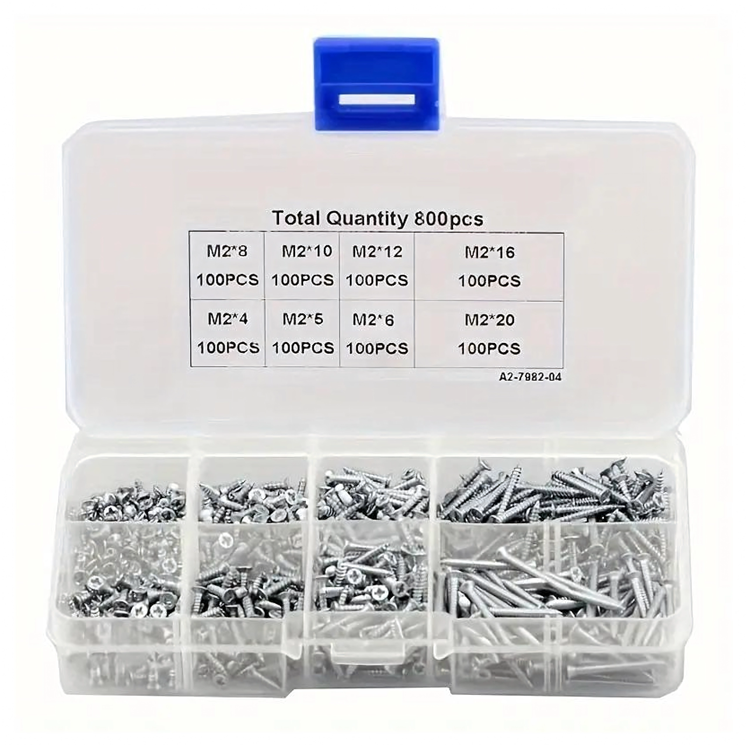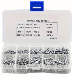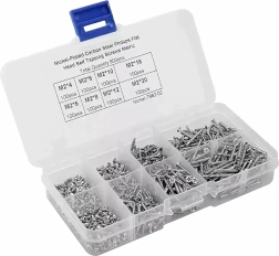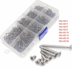 Tato kompletní sada šroubů M2 je skvělou volbou pro domácí dílnu, servis elektroniky i montáž nábytku. Odolná niklovaná povrchová úprava zajišťuje lepší ochranu proti korozi a plynulé šroubování. Díky 8 různým délkám snadno zvolíte správný šroub pro daný materiál a tloušťku.