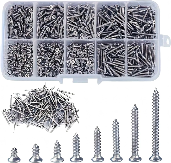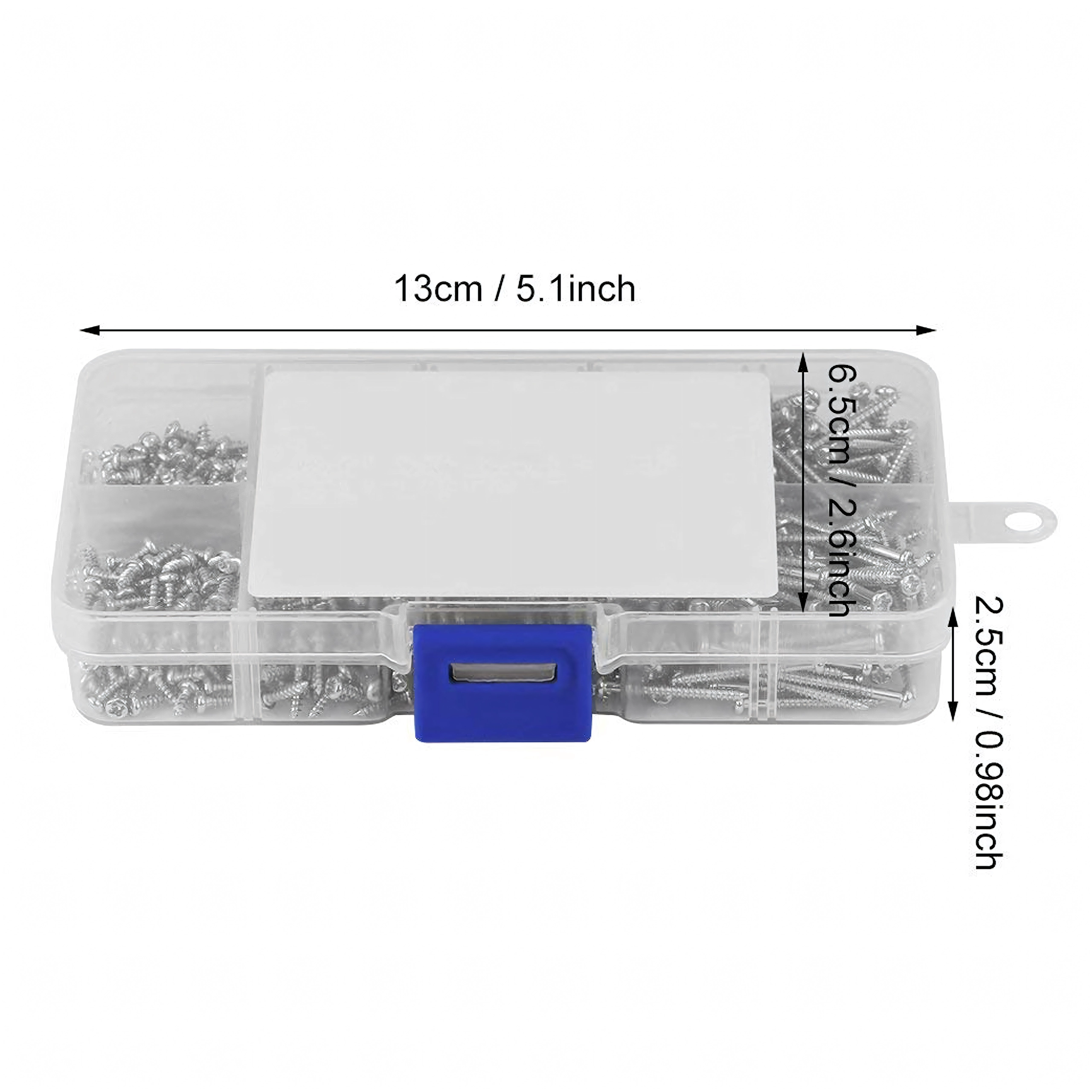 Transparentní organizér s přihrádkami a popisem velikostí výrazně zrychlí práci a výběr. Šrouby jsou vhodné pro precizní opravy elektroniky, montáž drobných dílů, upevnění pantů a lehké konstrukční spoje do dřeva, plastu i plechu.