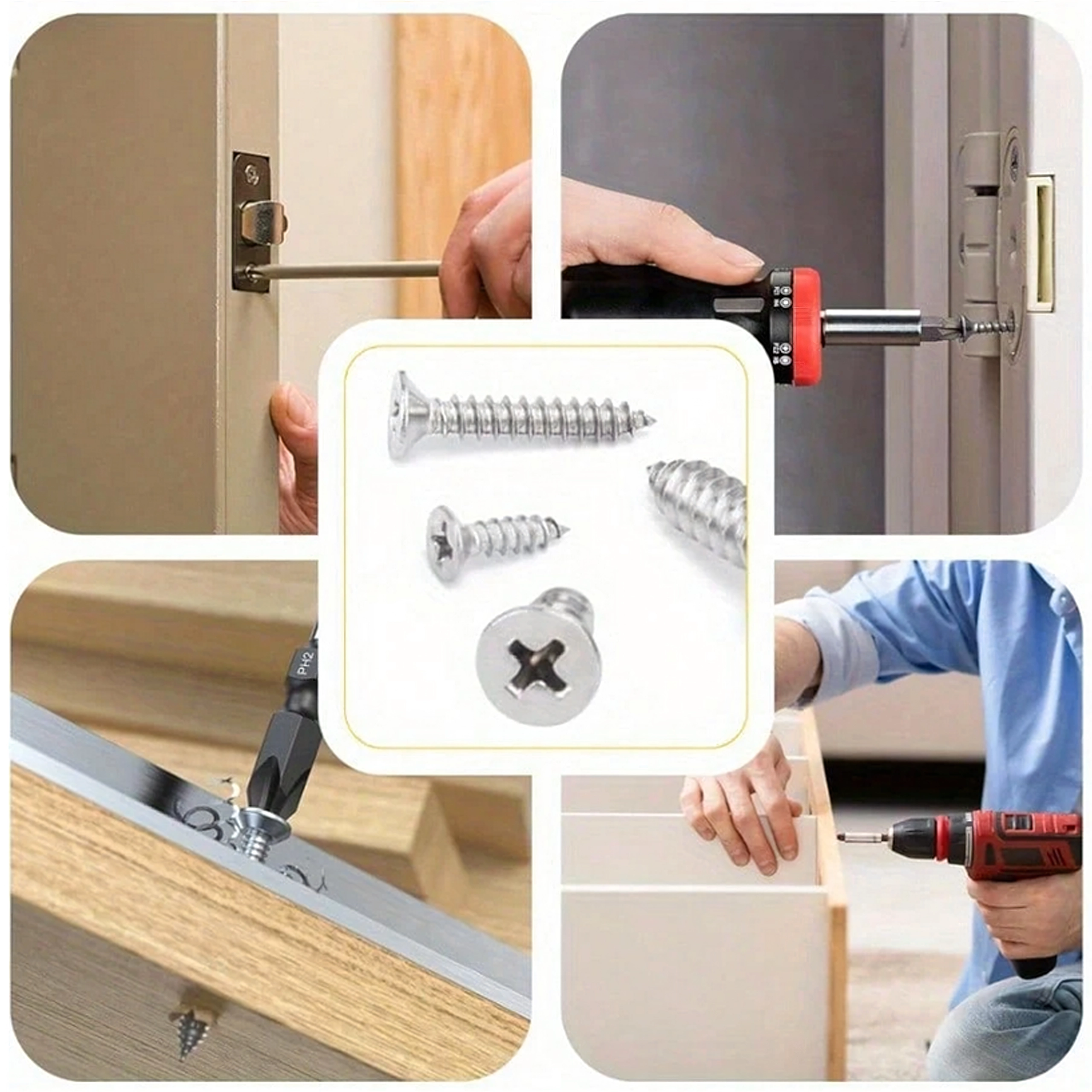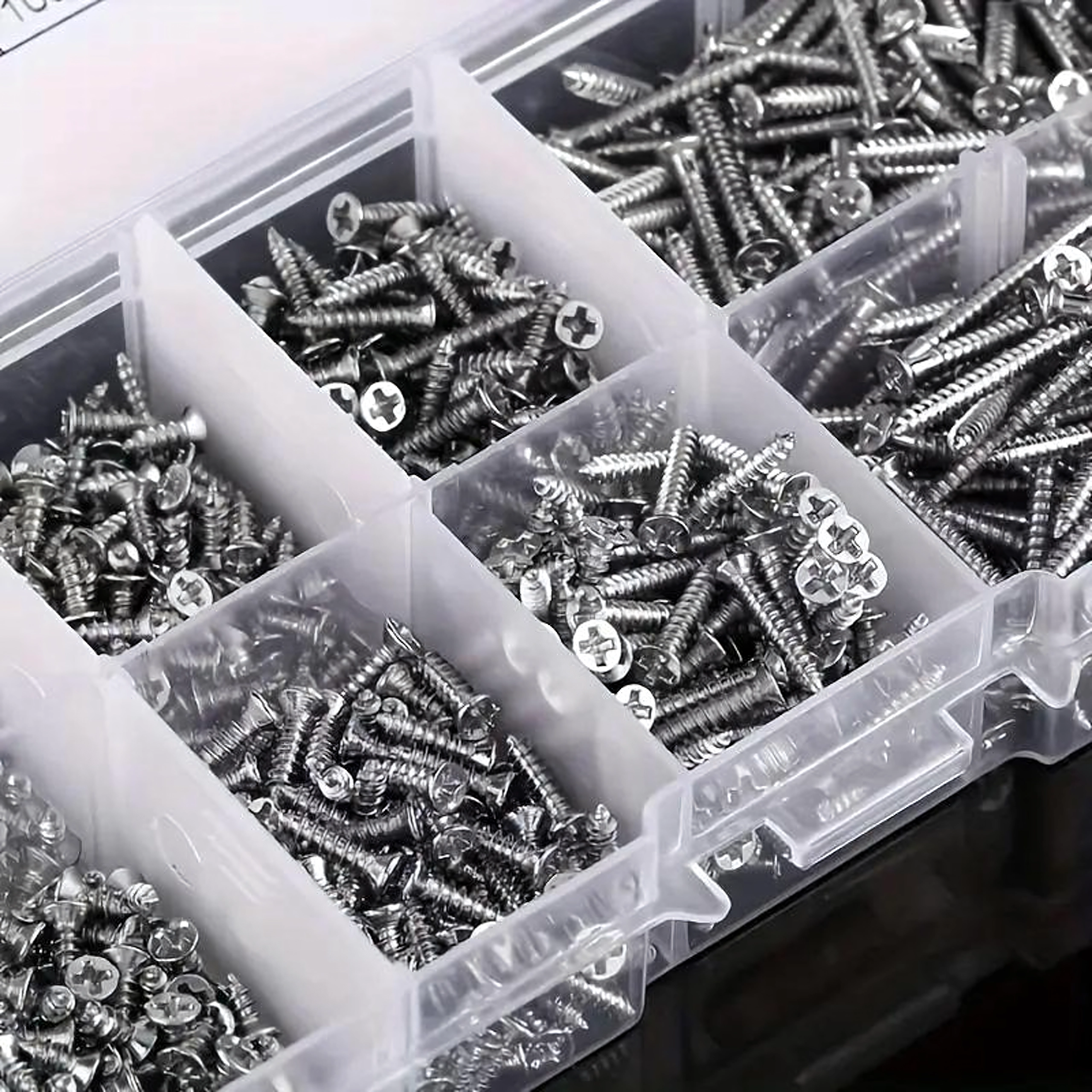 Každá velikost má vlastní přihrádku a jasné označení, takže vždy rychle najdete správný šroub pro daný úkol.