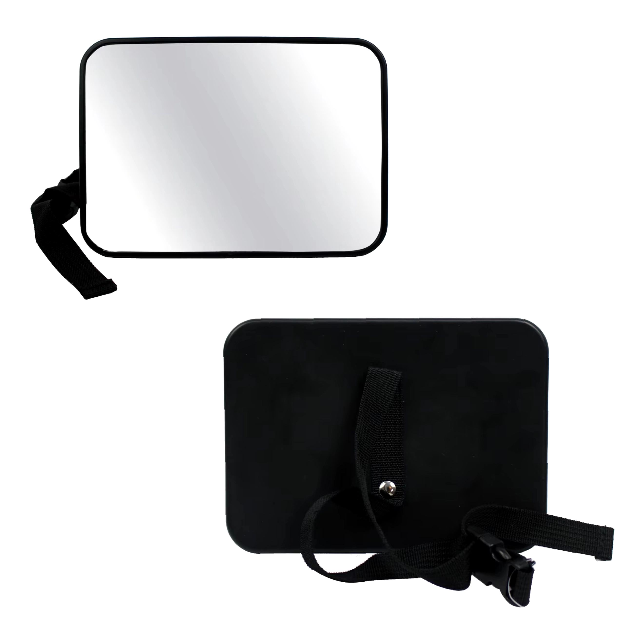Lehká, ale odolná konstrukce se silnými montážními pásky zaručí pevné držení i při delších cestách. Rozměr 18,8 × 13,5 cm poskytuje dostatečně velkou odrazovou plochu, přitom nepřekáží ve výhledu.