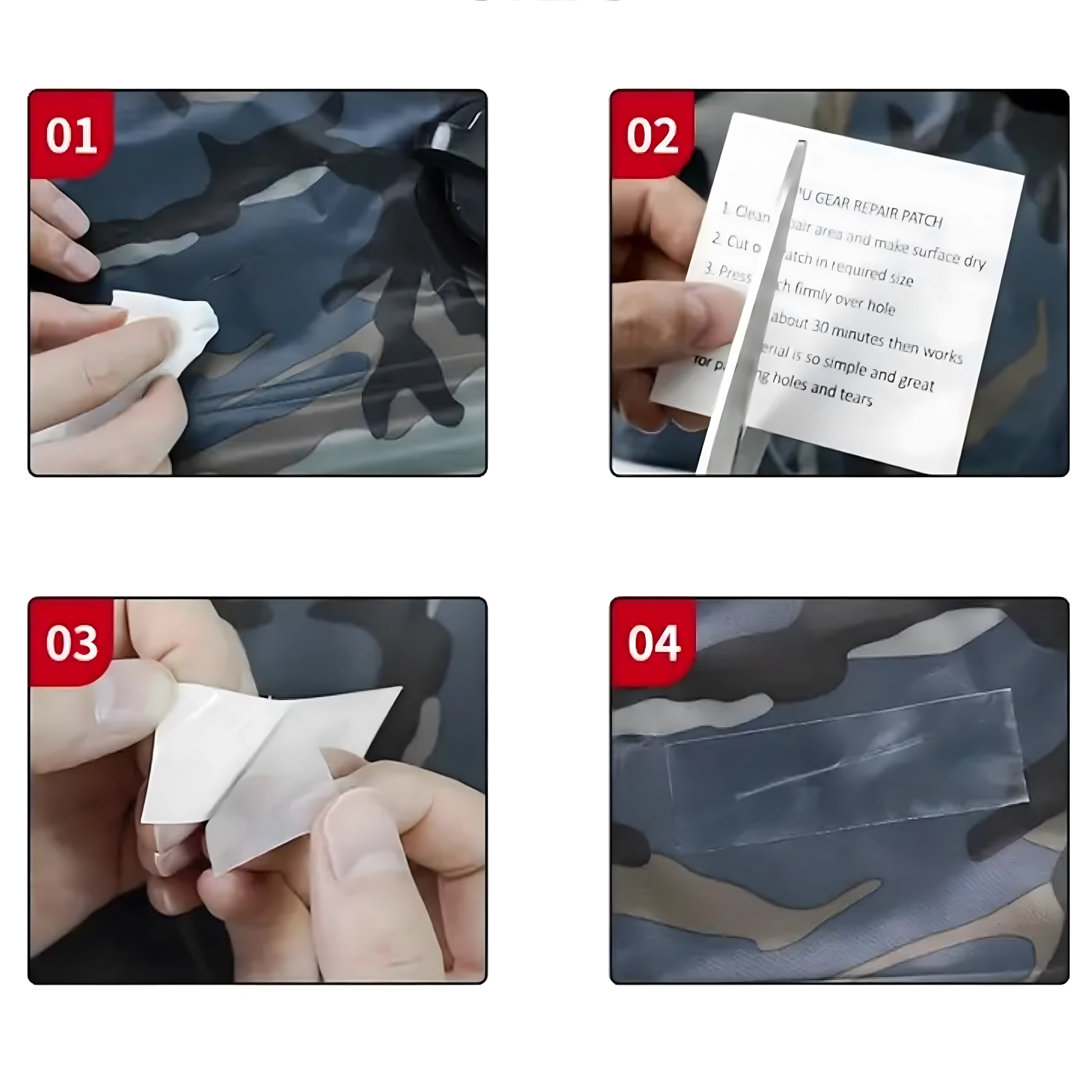 Obnovte svoje nafukovací vybavení během chvilky. Průhledné záplaty se dokonale přizpůsobí povrchu a vytvoří odolné a nepropustné utěsnění proti úniku vzduchu i vody. Díky jednoduché aplikaci nepotřebujete žádné nářadí – stačí místo očistit, osušit, sloupnout podklad a přilepit.
