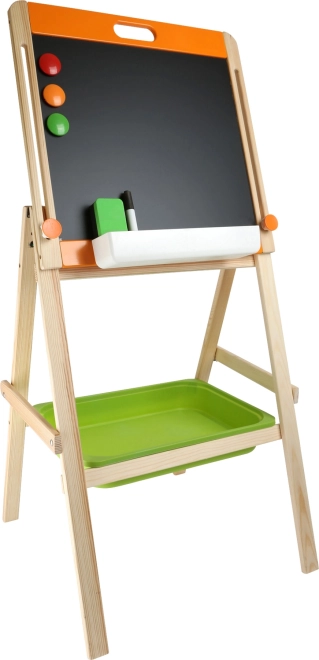 Tato kompaktní tabule 2v1 SMALL FOOT přináší dětem nekonečné možnosti kreativního vyjádření i hravého učení. Jedna strana slouží jako magnetická bílá tabule pro fix, druhá je křídová černá plocha pro barevné kreslení. Díky plynule nastavitelné výšce roste tabule spolu s dítětem a zůstává ergonomická i pohodlná při používání.