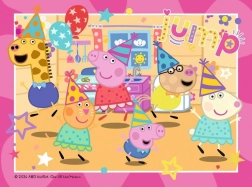 Tento set obsahuje čtyři samostatné obrázky s tématem oslavy z pohádky Prasátko Peppa. Díky postupnému zvyšování počtu dílků je ideální pro rozvoj trpělivosti, jemné motoriky a logického myšlení. S vyšším počtem dílků se zmenšuje velikost dílků, což podporuje přesnost a soustředění.
