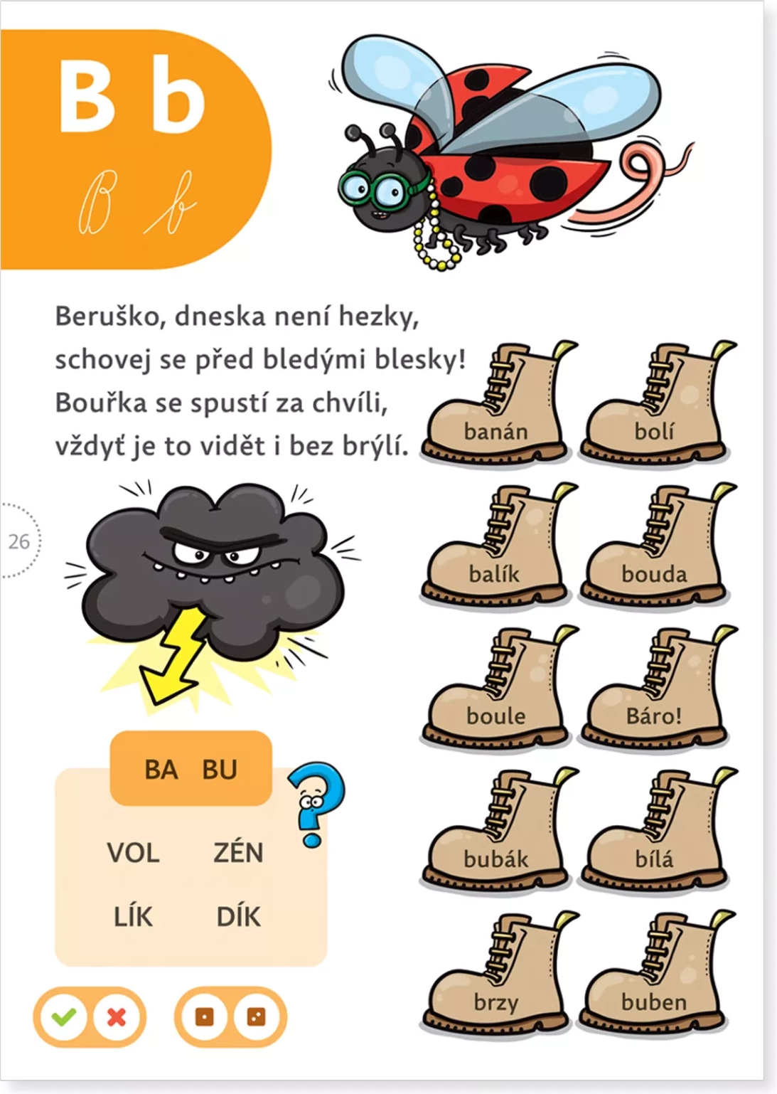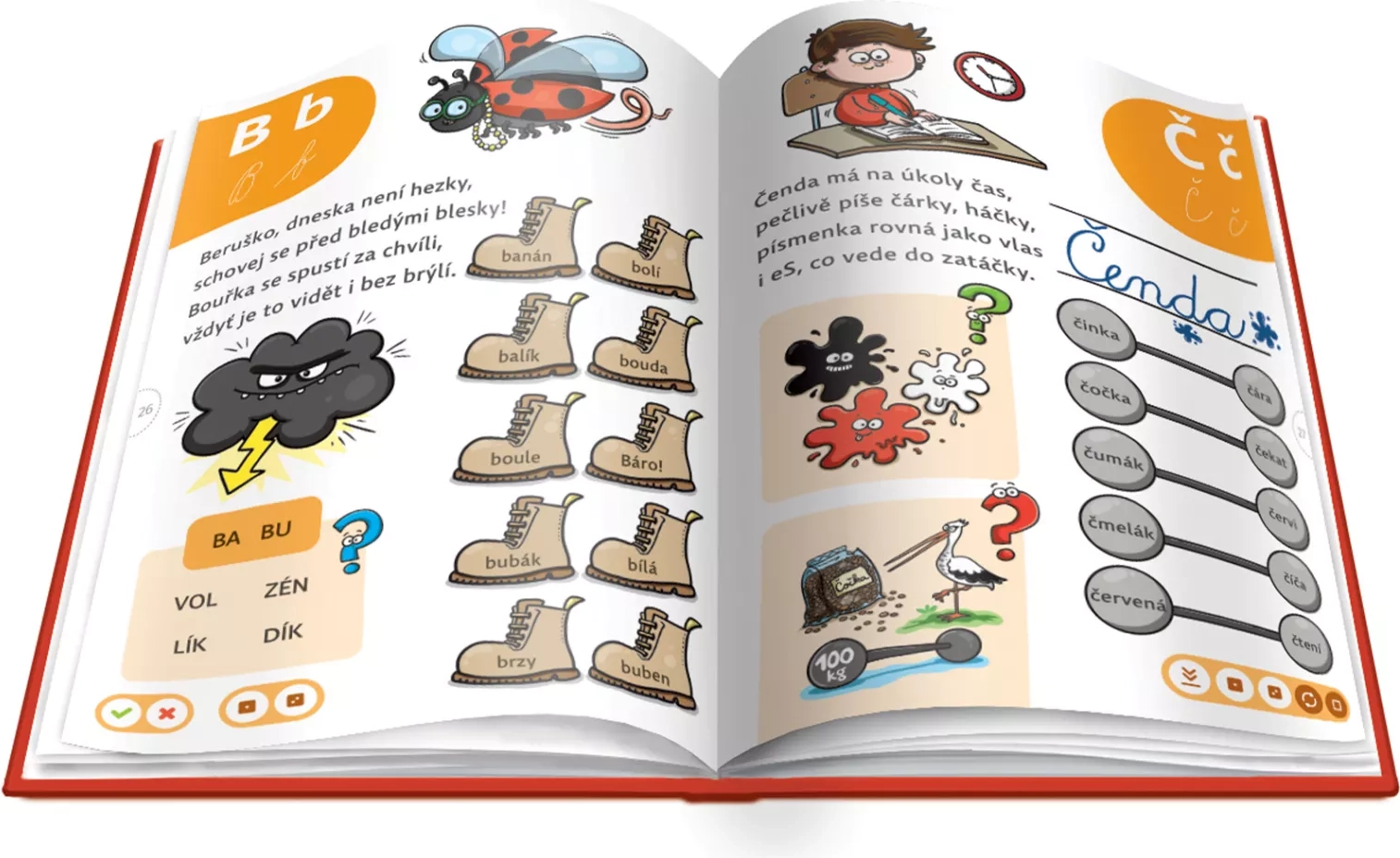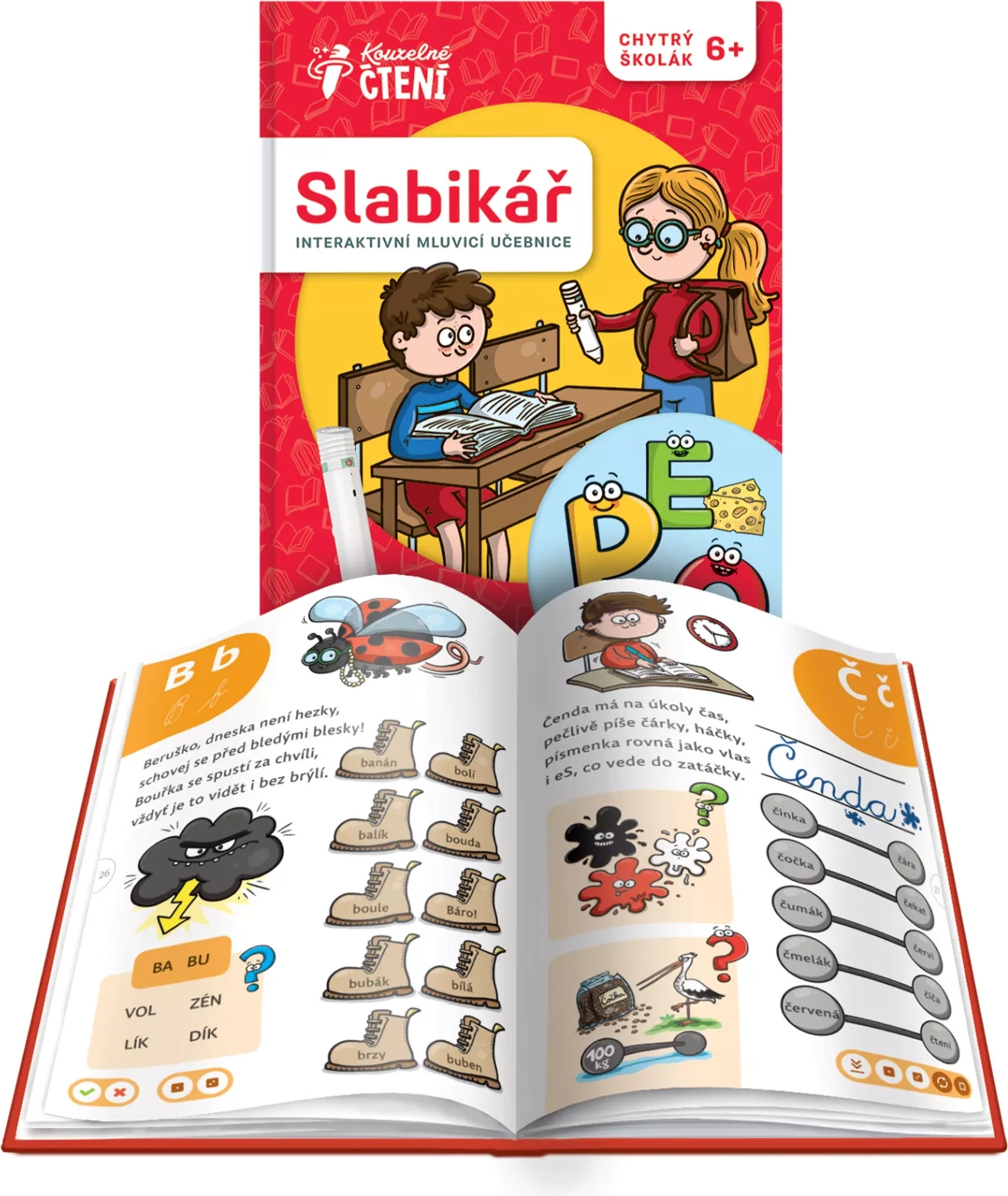 Ucelené bloky věnované samohláskám a souhláskám doplňují hravé aktivity, které upevňují učivo a rozvíjejí slovní zásobu. Bohatý audio obsah s více než 3 000 zvukovými stopami (hlas Daniel Krejčík) zaručí poutavý zážitek a motivaci k dalšímu čtení. Kniha je vhodná i pro domácí vzdělávání a zábavné procvičování.