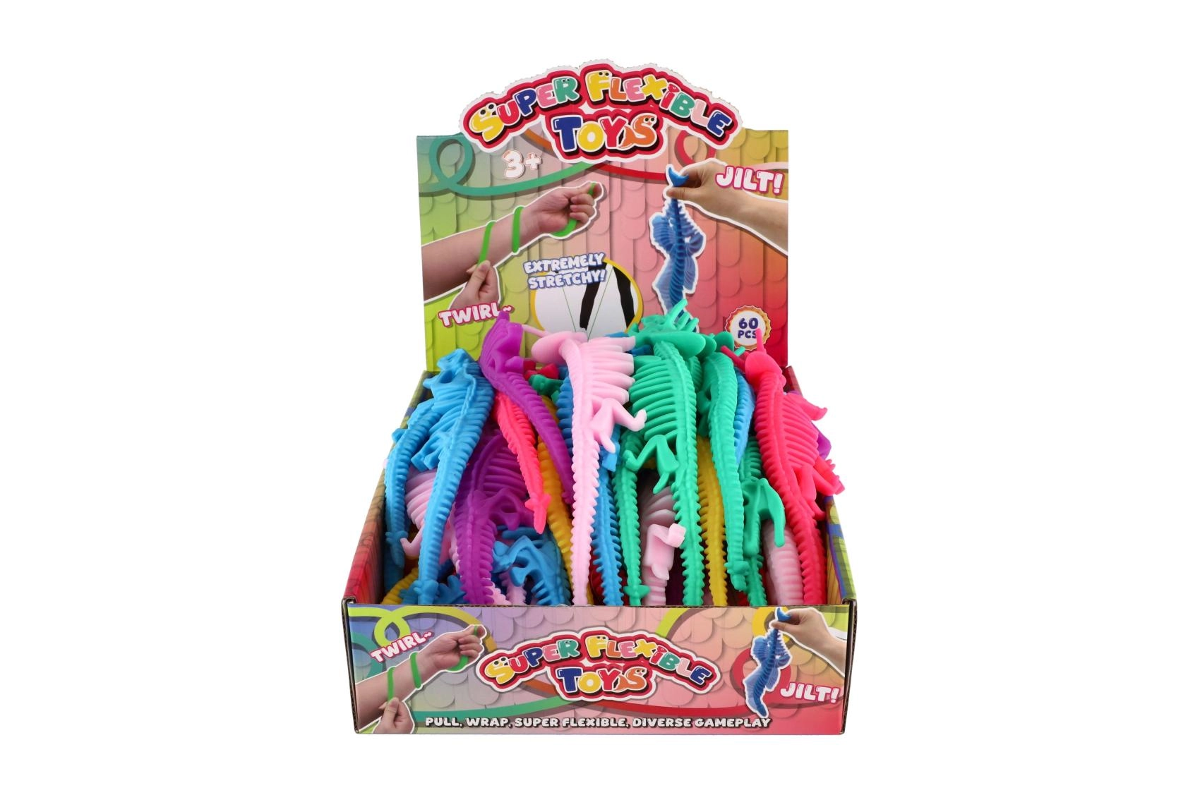 Barevná antistresová hračka ve tvaru kostry dinosaura z příjemně měkkého silikonu, ideální na mačkání, natahování a zklidnění ve stresu. Délka 22 cm, k dispozici v 6 výrazných barvách, skvělá pro děti i dospělé jako fidget hračka pro uvolnění napětí.