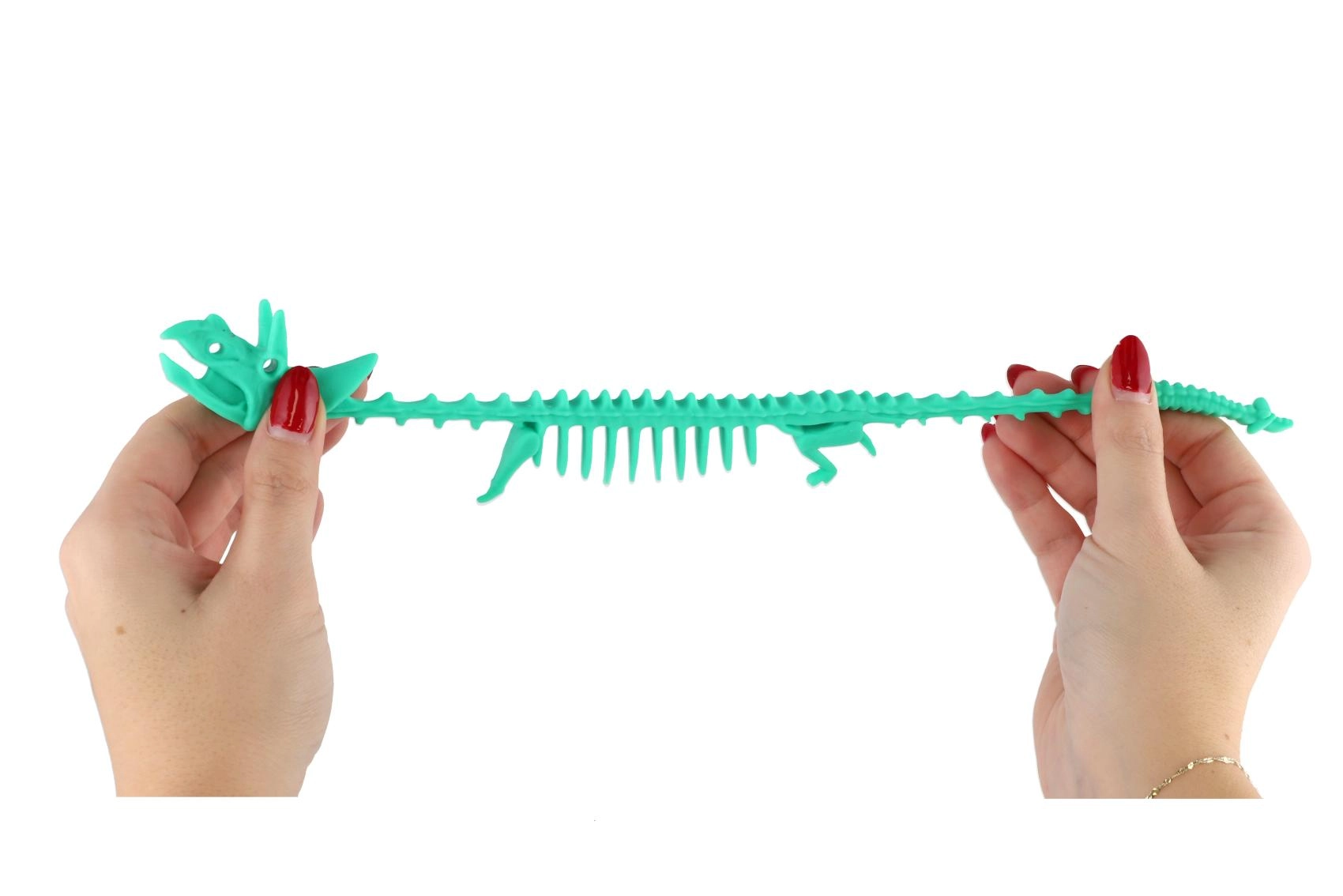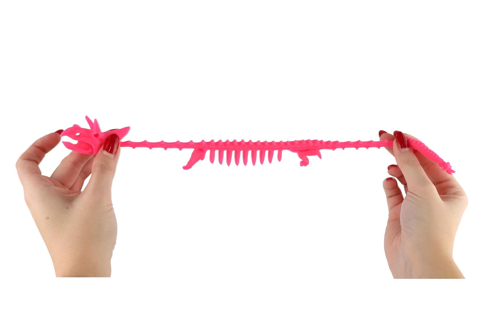 Tato natahovací kostra dinosaura je perfektní antistresová pomůcka pro každodenní chvíle pohody. Měkký a pružný silikon umožňuje hračku stlačovat, natahovat a kroutit bez obav z poškození, čímž pomáhá uvolnit napětí a zlepšit soustředění.