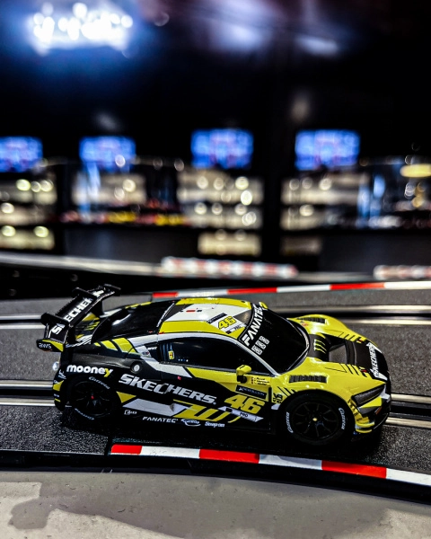Stylový vůz pro autodráhy GO!!! v měřítku 1:43 inspirovaný ikonickým jezdcem VALENTINO ROSSI. Nabízí spolehlivý kontakt díky dvojitým kartáčkům, výbornou stabilitu s magnetem a přesné vedení díky vodicí liště.