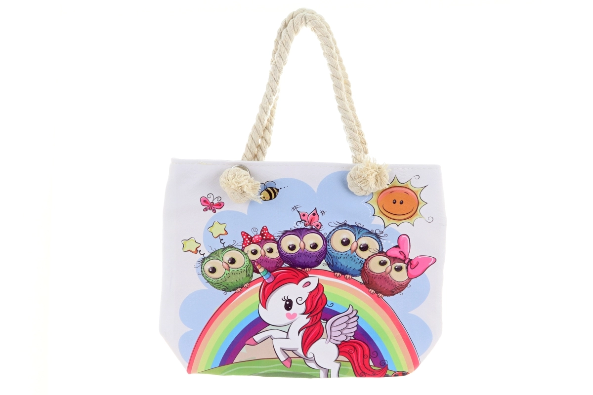 Stylová dětská kabelka přes rameno s kouzelným motivem jednorožce a soviček potěší malé parádnice. Nabízí praktický rozměr 28 × 22 cm, lesklou přední koženkovou stranu a odolnou látkovou zadní část pro pohodlné nošení každý den.