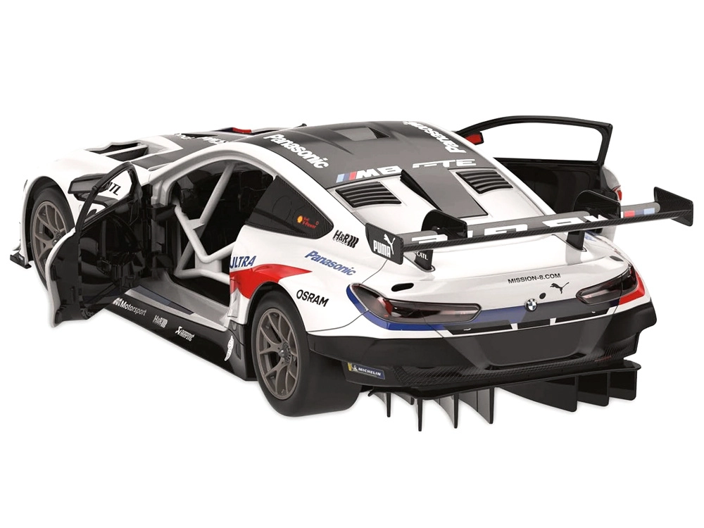 Autentická karoserie, aerodynamické prvky, otevírací dveře a realistický interiér s polepy BMW Motorsport pro maximální věrohodnost.