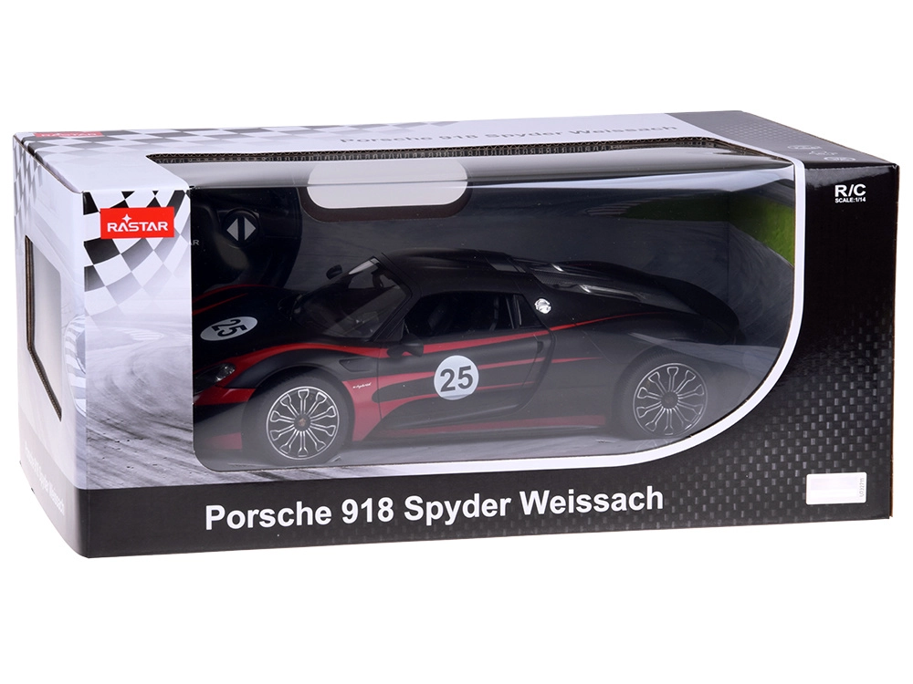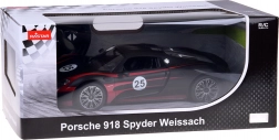 Užijte si realistickou jízdu s licencovaným modelem PORSCHE 918 Spyder v měřítku 1:14 od RASTAR. Športovní edice Weissach nabízí světelné efekty (přední při jízdě vpřed, zadní při couvání), přilnavé gumové pneumatiky, možnost seřízení sbíhavosti kol a spolehlivé ovládání 2,4 GHz pro plynulou jízdu.