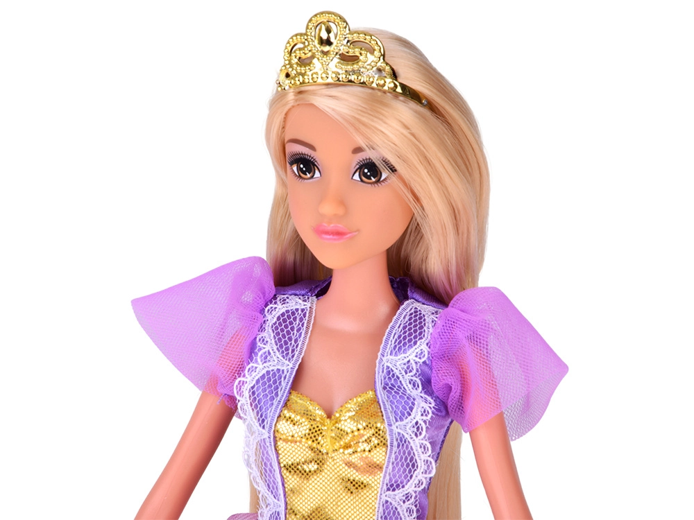 V balení najdete vše pro kouzelnou proměnu: zlatou tiáru, plastové střevíčky, širokozubý hřeben a ruční zrcátko. Lalka je skvělým tipem na dárek pro děti, které milují pohádky, oblékání a kadeřnické hry.