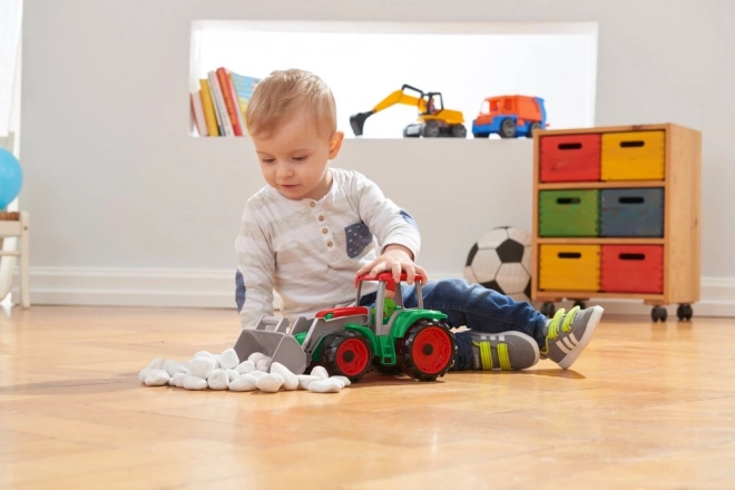 Traktor TRUXX je odolná hračka pro každodenní dobrodružství. Pohyblivá čelní lžíce snadno nakládá písek, kamínky či kostky, zatímco výklopná kabina a přiložená figurka podporují kreativní hru a rozvoj jemné motoriky. Robustní a přitom pružný plast bez ostrých hran je ideální pro malé děti.