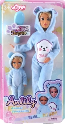 Roztomilá sada dvou panenek od značky WOOPIE přináší kreativní hru pro děti od 3 let. Najdete v ní velkou a malou panenku oblečené v měkoučkých modrých medvědích overalech s kapucí a oušky. Panenky mají pohyblivé ruce a nohy pro snadné převlékání a pózování – skvělý dárek pro malé milovníky zvířecích motivů.