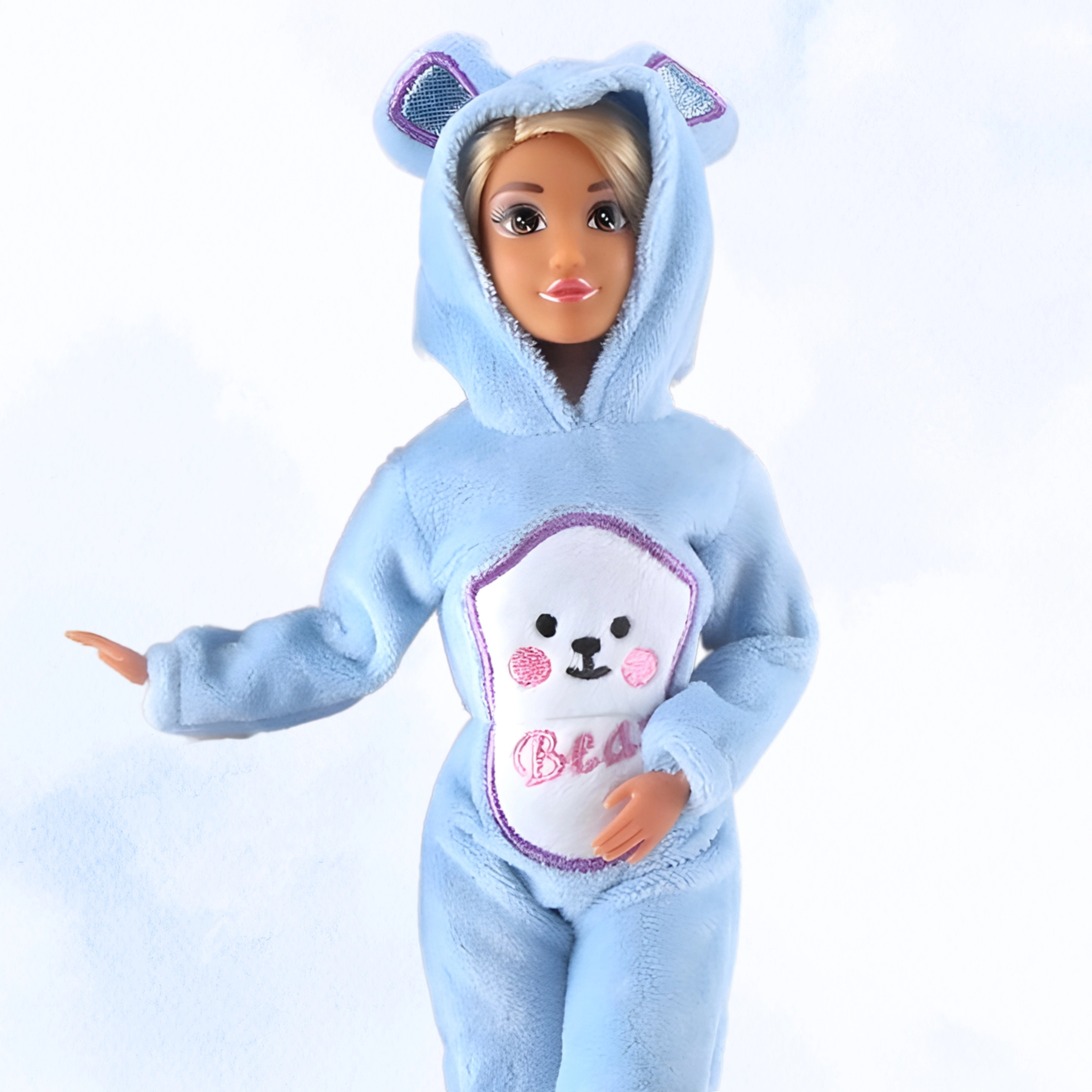 - Měkké, modré medvědí overaly s kapucí a roztomilými oušky.