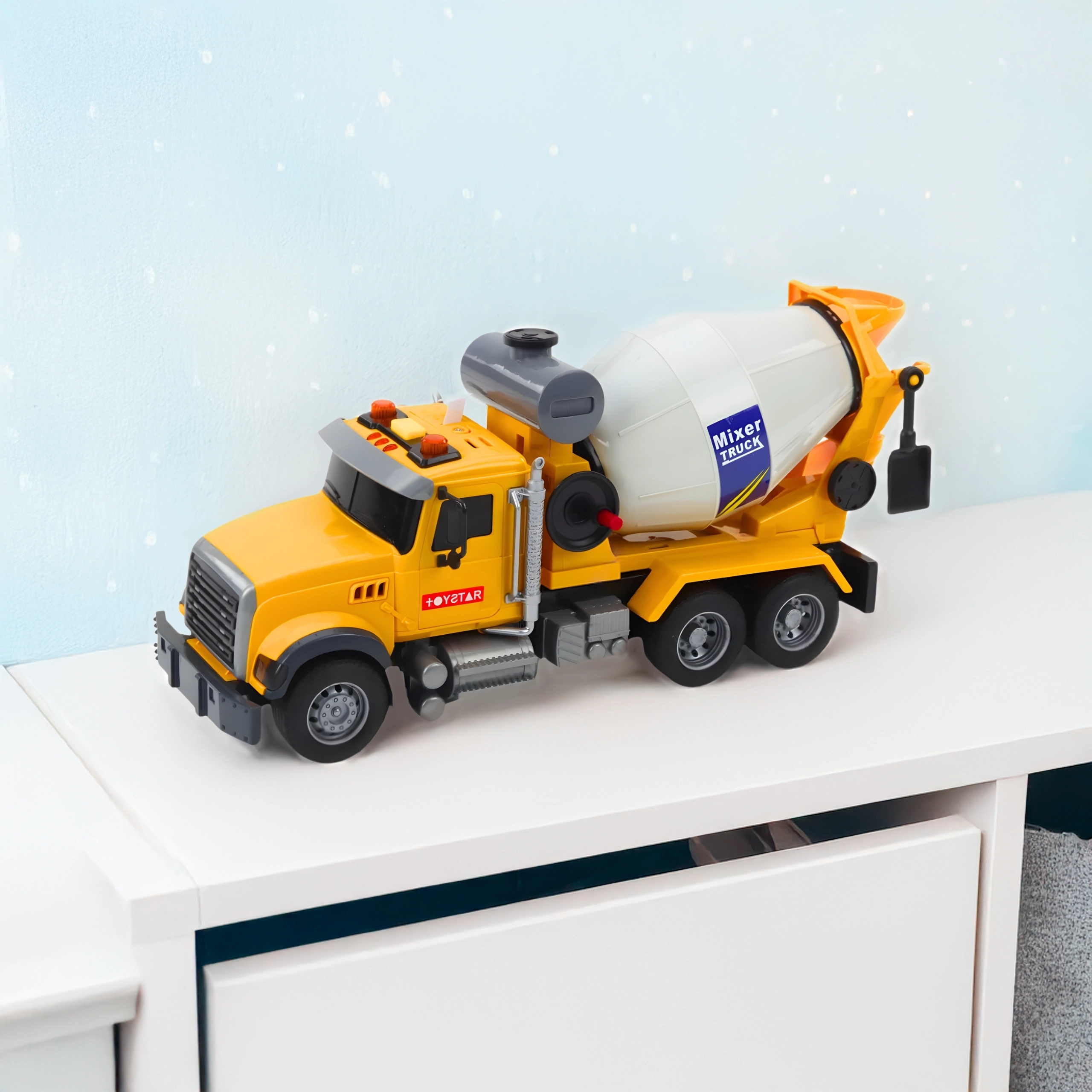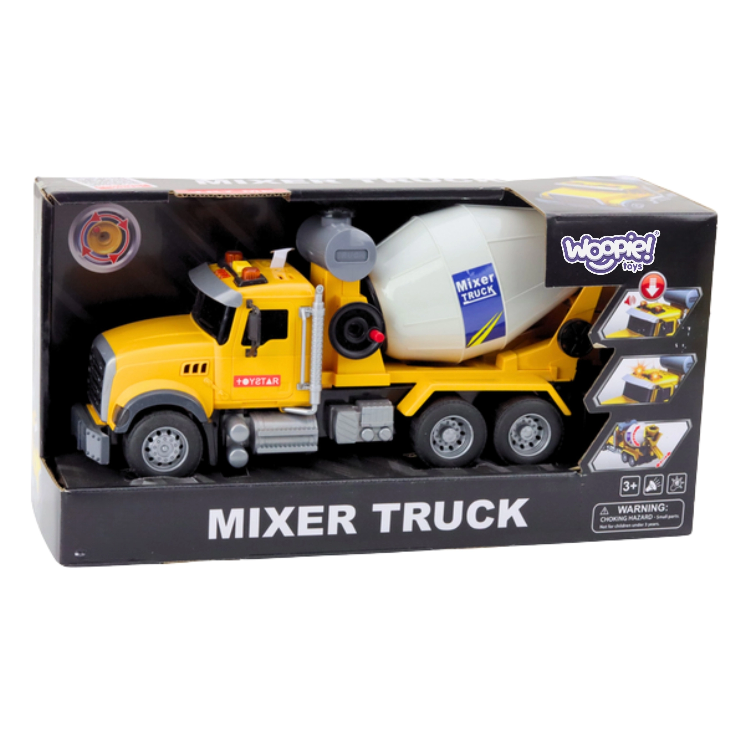 Dětská míchačka WOOPIE potěší malé stavitele autentickým vzhledem a funkcemi. Otočný míchací buben funguje jako u skutečného stroje, zatímco světelné majáky a zvukové efekty dodávají realistický zážitek ze hry. Výrazná žlutá barva přitahuje pozornost a odolný plast je zárukou bezpečí i při každodenním používání.