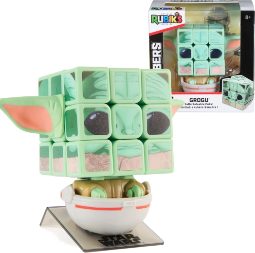 Objevte originální propojení hlavolamu a sběratelské figurky. Rubikova kostka 3x3 s motivem GROGU přináší radost z řešení i atraktivní vzhled na poličce. Po složení dílků se na čelní straně vytvoří obraz oblíbené postavy Grogu, přičemž přiložené díly umožní změnit kostku v dekorativní figurku s podstavcem.