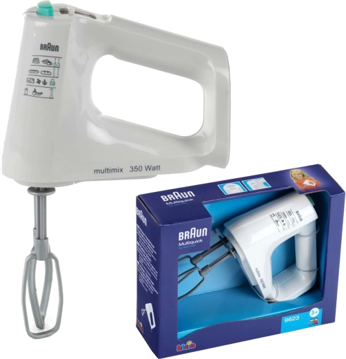 Tento dětský ruční mixér v bílé barvě je věrnou kopií skutečného spotřebiče BRAUN. Velká, dětem přizpůsobená tlačítka usnadňují ovládání a realistické pohybové a zvukové efekty podporují fantazii a hru na kuchaře.
