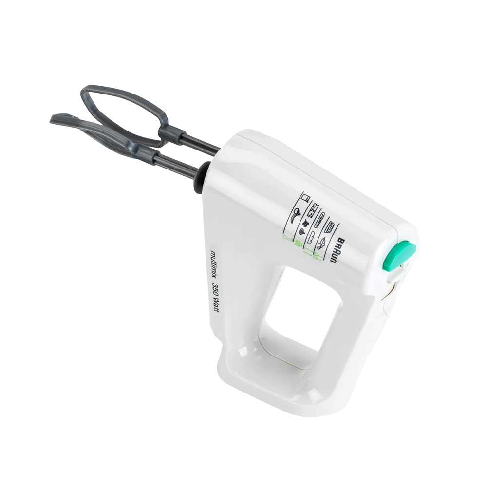 Myslí i na bezpečnost: otáčivé metly se automaticky zastaví při kontaktu s překážkou, například s ručkou dítěte. Odnímatelné šlehací nástavce se snadno nasazují i vyjímají.