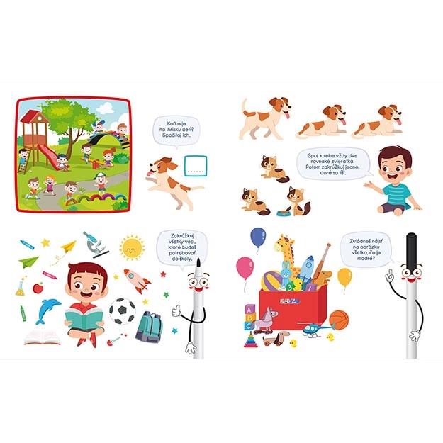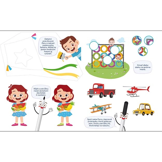 Uvnitř najdete rozmanité aktivity jako spojování bodů, hledání dvojic, jednoduché bludiště či doplňování obrázků. Zošit je navržen tak, aby bavil a zároveň nenásilně podporoval rozvoj klíčových dovedností před nástupem do školy.