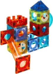 Magnetické kostičky s kuličkovou dráhou umožní dětem stavět věže, mosty i spirálové sjezdy a sledovat, jak kuličky sviští průhlednými tunely. Pevné magnetické spojení zajistí stabilitu konstrukcí bez zbytečných pádů, zatímco LED prvky promění každou stavbu v světelnou show. Součástí je i barevný návod krok za krokem, který usnadní rychlý start a inspiruje k dalším nápadům.