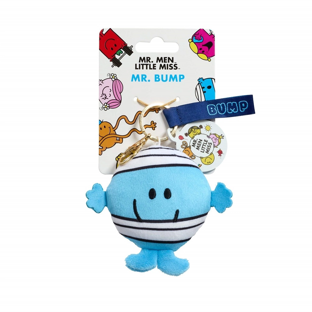 Veselá klíčenka s postavičkou MR. BUMP přináší porci nostalgie i každodenního úsměvu. Modré tělo s bílými pruhovanými „obvazy“, vyšívaný obličej a hebký plyš z ní dělají příjemný talisman pro malé i velké. Díky kovovému kroužku a karabince ji snadno připnete na zip batohu, ucho kabelky či svazek klíčů.