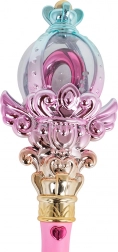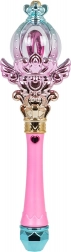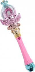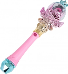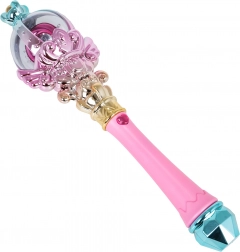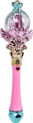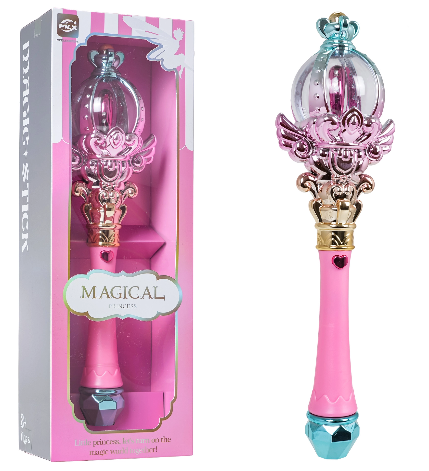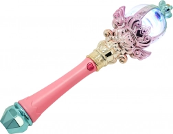 Tato interaktivní kouzelná hůlka promění každou hru na pohádkové dobrodružství. Průsvitná kopule a křišťálové detaily se rozzáří do zelené, modré a červené, zatímco tlačítko na rukojeti spustí magické zvuky a melodie. Ideální pro hraní na princezny, víly i čaroděje.