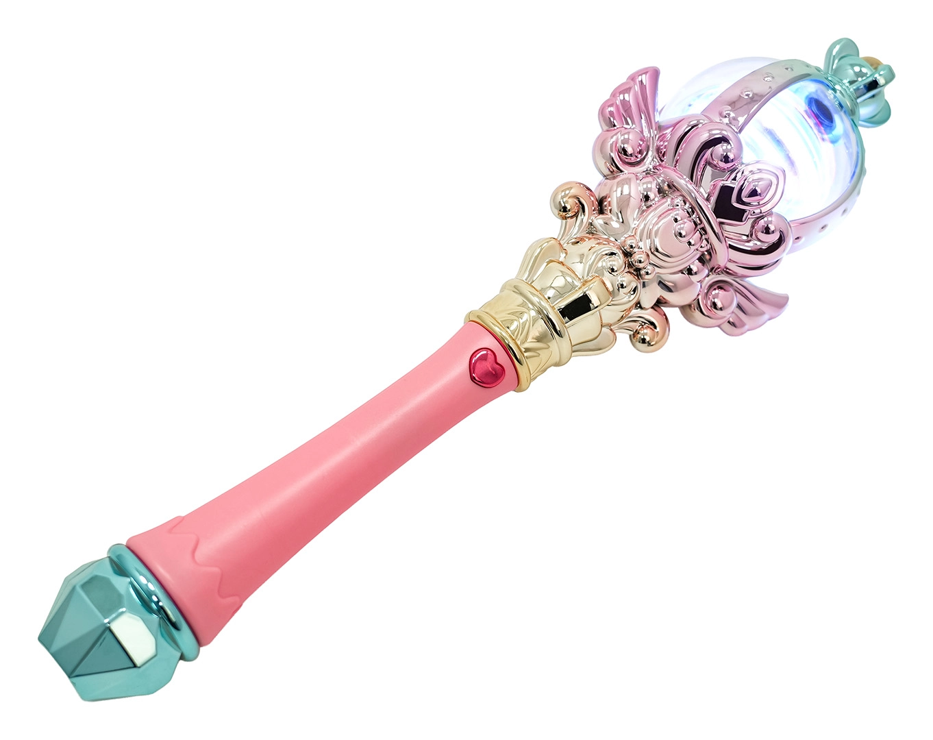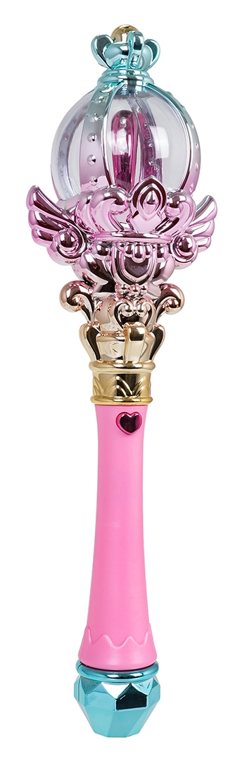 Průhledná kopule a "drahokamy" se rozsvítí do zelené, modré a červené barvy – efekt rotačního světla zaručí wow dojem při každém kouzlu.