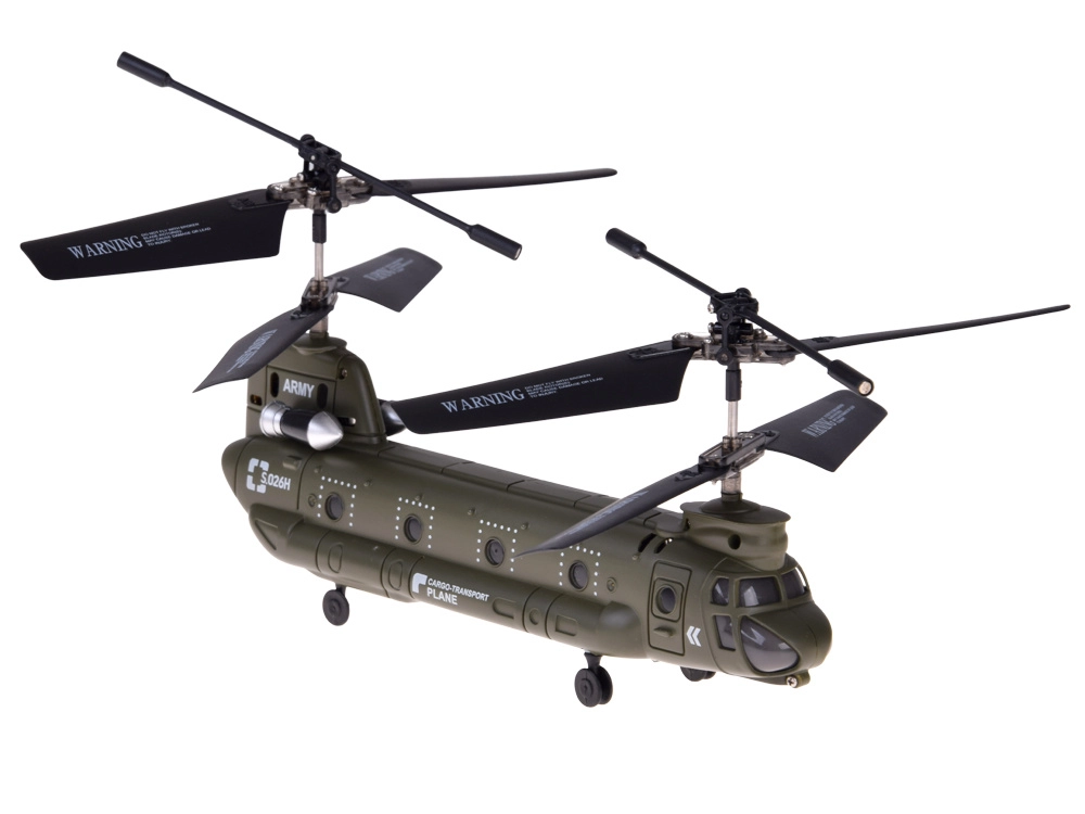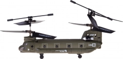 Tento detailně zpracovaný model legendárního transportního vrtulníku CH-47 CHINOOK přináší spolehlivou stabilitu a jednoduché ovládání. Tandemová dvojice rotorů a 6osý gyroskop pomáhají vrtulníku klidně viset ve vzduchu a udržovat rovnováhu i při prvních pokusech o řízení. Díky kompaktním rozměrům je model určený především pro létání v místnosti.