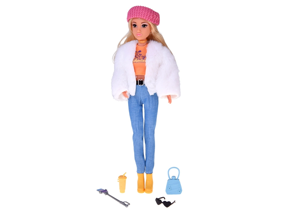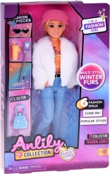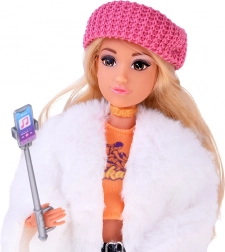 Stylová panenka ANLILY v zimní stylizaci potěší každého malého milovníka módy. Má dlouhé světlé vlasy, plně pohyblivé končetiny a bohatou sadu doplňků pro kreativní hraní. Nechybí měkoučký bílý kožíšek, růžová čepice, sluneční brýle ve tvaru srdíček, kabelka, kelímek s nápojem a selfie tyč – vše pro influencer scénky a focení bez obrazovky.