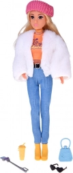 Panenka ANLILY je připravená zazářit v zimním looku: oranžový crop top, světle modré džíny, žluté boty a hebký bílý kožíšek tvoří trendy kombinaci pro každodenní styl i focení. Díky kloubovým a polohovatelným končetinám ji snadno postavíte do póz pro perfektní fotky a módní přehlídky.