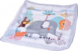 Díky kombinaci různých textur, kontrastních barev a zvuků hraček podněcuje podložka zrak, sluch i hmat, zároveň podporuje koordinaci oko–ruka a přirozený rozvoj motoriky. Měkký materiál příjemně izoluje od studené podlahy a snadno se udržuje. Podložka je ideální pro tummy time, první přetáčení, posazování i lezení.