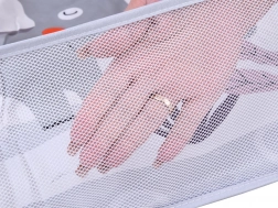 Síťované bočnice vytvářejí přehledný a vzdušný prostor, kde zůstávají hračky i míčky uvnitř. Miminko je v bezpečí a rodič má stále přímý dohled.