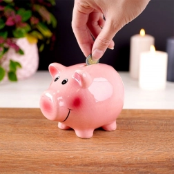 Pokladnička je vyrobena z lesklé keramiky, která je odolná a dobře se udržuje. Spodní gumový uzávěr umožňuje opakované používání bez nutnosti prasátko rozbíjet – šetření tak může začít znovu a znovu.