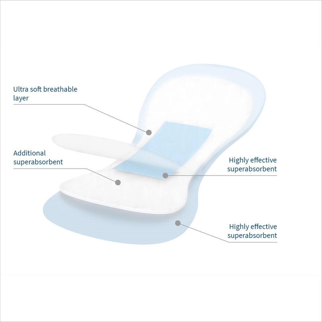 - Dvojitý superabsorbent (rychlé vedení vlhkosti dovnitř, neutralizace pachů)