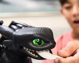 Pomocí přiložené rybičky si získáš Bezzubkovu důvěru. Sleduje rybku, reaguje na tvoji ruku a mění chování od divokého k přátelskému.