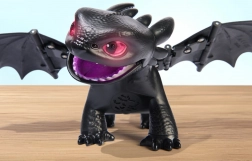 Poznejte svého vlastního draka Nocní běsy! Interaktivní figurka BEZZUBKY z filmové série JAK VYCVIČIT DRAKA reaguje na dotyk i pohyb, má 5 osobností, přes 60 zvuků a reakcí, svítící oči a působivý plazmový útok. Součástí je krmící rybička a baterie, takže zábava může začít hned.