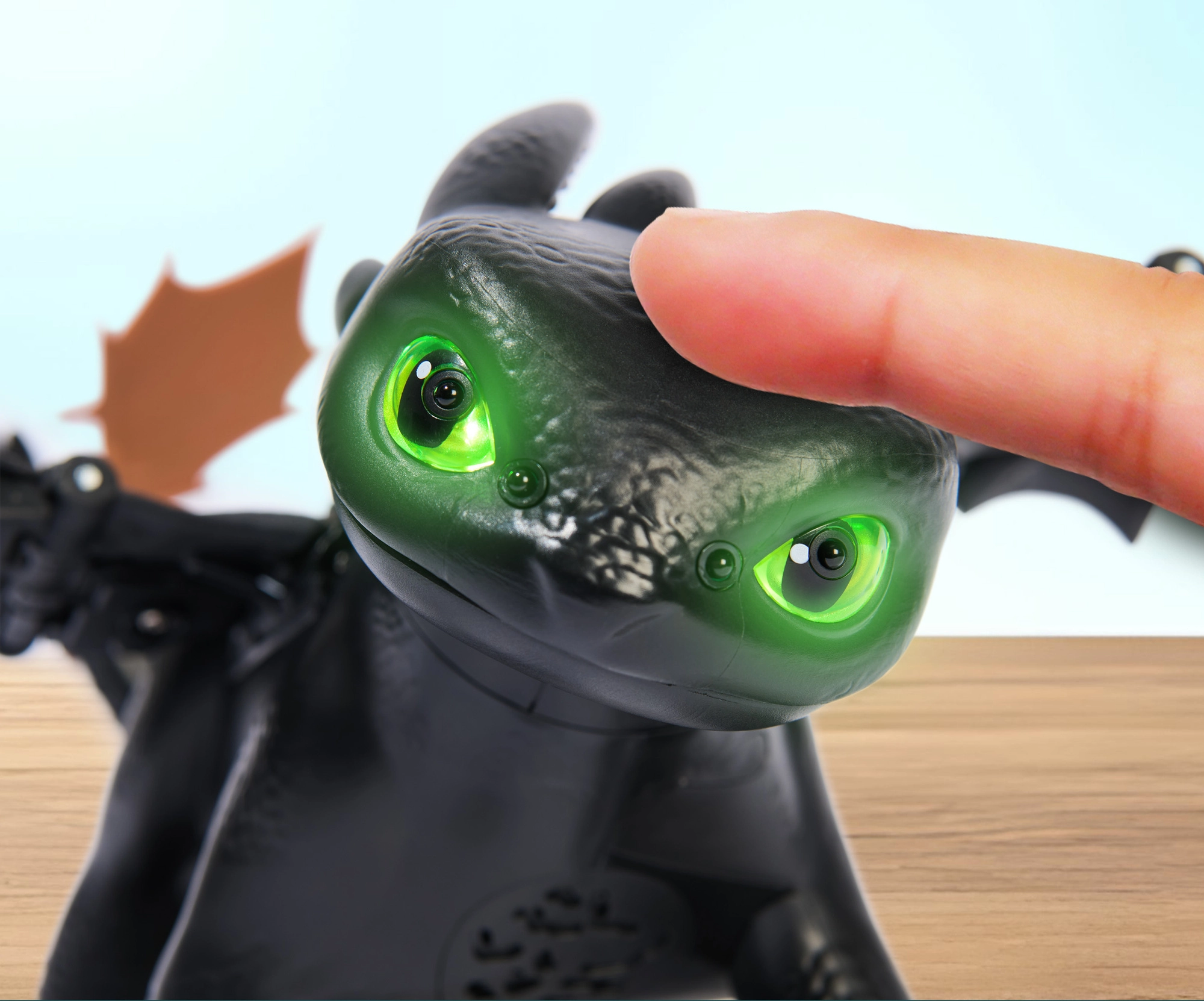 Figurka nabídne 5 unikátních osobností a více než 60 zvukových a světelných reakcí. Odemknete minihry jako „keep away“ (honba za rybkou), „follow me“ (následuj mě) a „chicken“. Na vrcholu přátelství předvede plazmový útok – oči se rozsvítí do modra a rozpětí křídel až 51 cm zaplní celý prostor. Zvedněte draka do vzduchu a uslyšíte realistické zvuky letu – ideální pro kreativní hraní a znovuoživení scén z filmu.