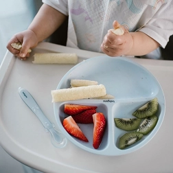 Měkká silikonová lžička pro nejmenší podporuje samostatné krmení, má flexibilní špičku šetrnou k dásním a zoubkům a ergonomický tvar pro snadný úchop. Je bezpečná, odolná a lze ji mýt i v myčce nádobí.