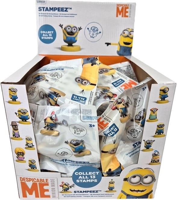 Objev zábavu s překvapením! V každém sáčku série Stampeez s motivem Mimoni se skrývá náhodná pečiatka nebo minifigurka s oblíbenými postavičkami. Skvělé pro sbírání, výměnu s kamarády i zdobení sešitů a pozvánek. K dispozici je více různých designů, obsah je náhodný. Perfektní drobnost do odměn nebo jako malý dárek. Cena za kus.