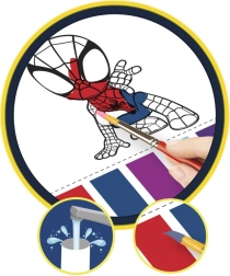 Zábavný omalovánkový blok s motivy Spidey pro malé umělce. Praktické spirálové provedení ukrývá 20 omalovánek, součástí je 6 barev a štětec – vše, co děti potřebují k okamžitému tvoření doma i na cestách.