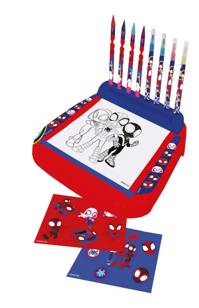 Objevte zábavný kreativní stojan s motivy SPIDEY, který promění malování v pohodlnou a přehlednou aktivitu. Díky roli omalovánek mají děti stále nový obsah k vybarvování, zatímco stojan udržuje papír na místě a pracovní plochu čistou.