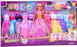Tento okouzlující set pro malé milovnice módy přináší vše, co je potřeba pro kreativní převlékání. Panenka ANLILY s dlouhými vlasy a detailním líčením se může oblékat do 11 různých šatů – třpytivých, s tylem, vzorovaných i hladkých, krátkých i dlouhých. Bohatá sada doplňků (korunky, náhrdelníky, kabelka, žezlo a barevné lodičky) dodá každé stylizaci jedinečný šmrnc.