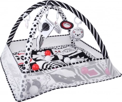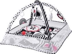 Kontrastní vzory (černá, bílá, červená) pomáhají miminku lépe zaostřovat a podněcují jeho vizuální vývoj. Měkká plocha podporuje čas na bříšku, zvedání hlavičky a posilování krčního a zádového svalstva – důležité kroky k přetáčení, plazení a chůzi.