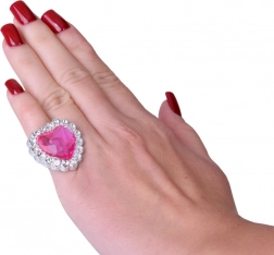 Stříbrně tónovaná plastová tiára s velkým srdcem uprostřed dodá každému převleku královský vzhled.