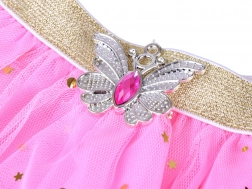 Lehký tyl s hvězdičkami a měsíčky, zlatý pružný pas a motýlí ozdoba vpředu. Krásně se vlní při tanci a hrách.