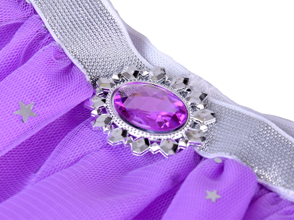 Proměňte každé převlékání v pohádkový bál. Fialová tutu sukně se třpytivými hvězdami a měsíčky okouzlí na první pohled, zatímco stříbrná korunka, náhrdelník, prsten a visací náušnice s fialovými kamínky doladí královský vzhled. Elastický pas zajistí pohodlí a snadné oblékání.