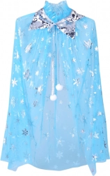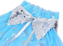 Elegantní pláštěnka z lehkého, průsvitného tylu je zdobená stříbrnými sněhovými vločkami a flitrovaným límečkem. Zavazování na měkké bílé bambulky zajistí pohodlné a bezpečné nošení. Studené modré tóny se třpytem stříbra vytvářejí okouzlující zimní vzhled, který děti milují.