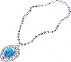 Stříbrná tiára s modrými kameny a ladící náhrdelník s kapkovitým přívěskem dodají každému převleku pohádkový šmrnc.