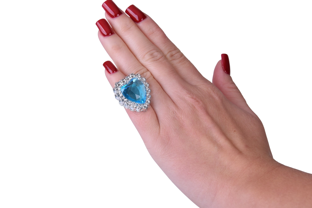 Klipsové náušnice a výrazný prsten se srdcovými modrými kameny krásně doplní celý set a snadno se nasazují i sundávají.